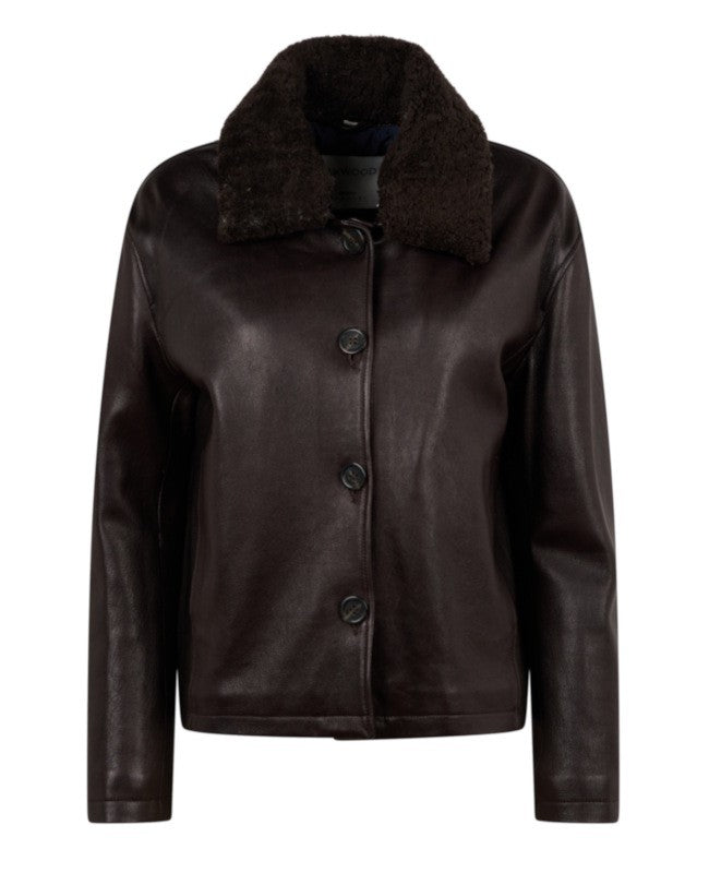JacketGenuine sheep leatherRemovable sherling fur collarCentral closing with zipperSide zipped pocketsInside pockets with press buttons closingRibbed collar and bottom of garmentNylon lining and polyester padding